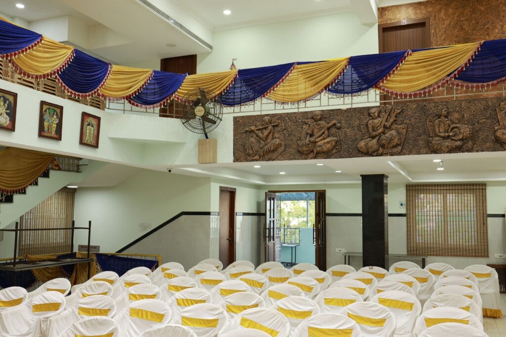 Jaya Jayashankara Marriage Hall is a popular choice for families looking for an affordable traditional marriage hall in Madipakkam. Many families want a venue that respects cultural values without excessive expenses, and this marriage hall offers exactly that balance. It is ideal for weddings rooted in tradition and simplicity. Despite being budget-friendly, the hall does not compromise on essential facilities. It provides a spacious mandapam, proper seating arrangements, lighting, and a clean dining area. These features make it a valuable option for families searching for a low-budget marriage hall in Madipakkam that still maintains dignity and tradition. The hall is suitable not only for weddings but also for religious functions such as upanayanams, sashtiapthapoorthi, and naming ceremonies. Its traditional design enhances the spiritual feel of every function, making it a meaningful venue for family gatherings. For families planning a cost-effective yet culturally rich wedding, Jaya Jayashankara Marriage Hall stands out as one of the best affordable marriage halls in Madipakkam. Its value-for-money approach and traditional atmosphere make it a trusted choice.
